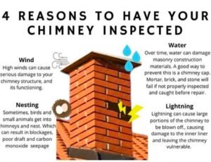 Flashing is a waterproof barrier installed around the chimney base to prevent water leaks into the roof. If flashing is rusted, cracked, or poorly installed, water can seep into the roof and attic, causing costly damage.